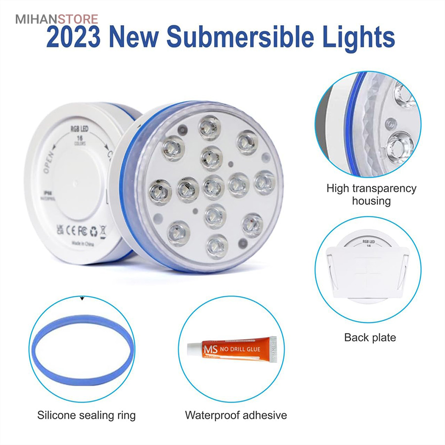 ایده آل برای استخر، وان حمام، حوض، فواره، آبشار، آکواریوم، گلدان، باغ، باغچه، عروسی، مهمانی و غیره. این محصول طراحی ضدآب بسیار قدرتمندی دارد، حلقه مهر و موم خارجی سیلیکاژل مقاوم در برابر حرارت دارای اثر ضد آب بهتری نسبت به سایر چراغ های استخر دارد، از ورود کامل آب جلوگیری می کند و عمر طولانی را تضمین می کند. نمای بیرونی ABS ضخیم شده، محافظت در برابر خوردگی و سفتی را نشان می دهد. دارای 16 رنگ، 5 سطح روشنایی، 3 حالت نور و 3 عملکرد تایمر (2 ساعت، 4 ساعت، 6 ساعت)، شما می توانید آن را به دلخواه تنظیم کنید.